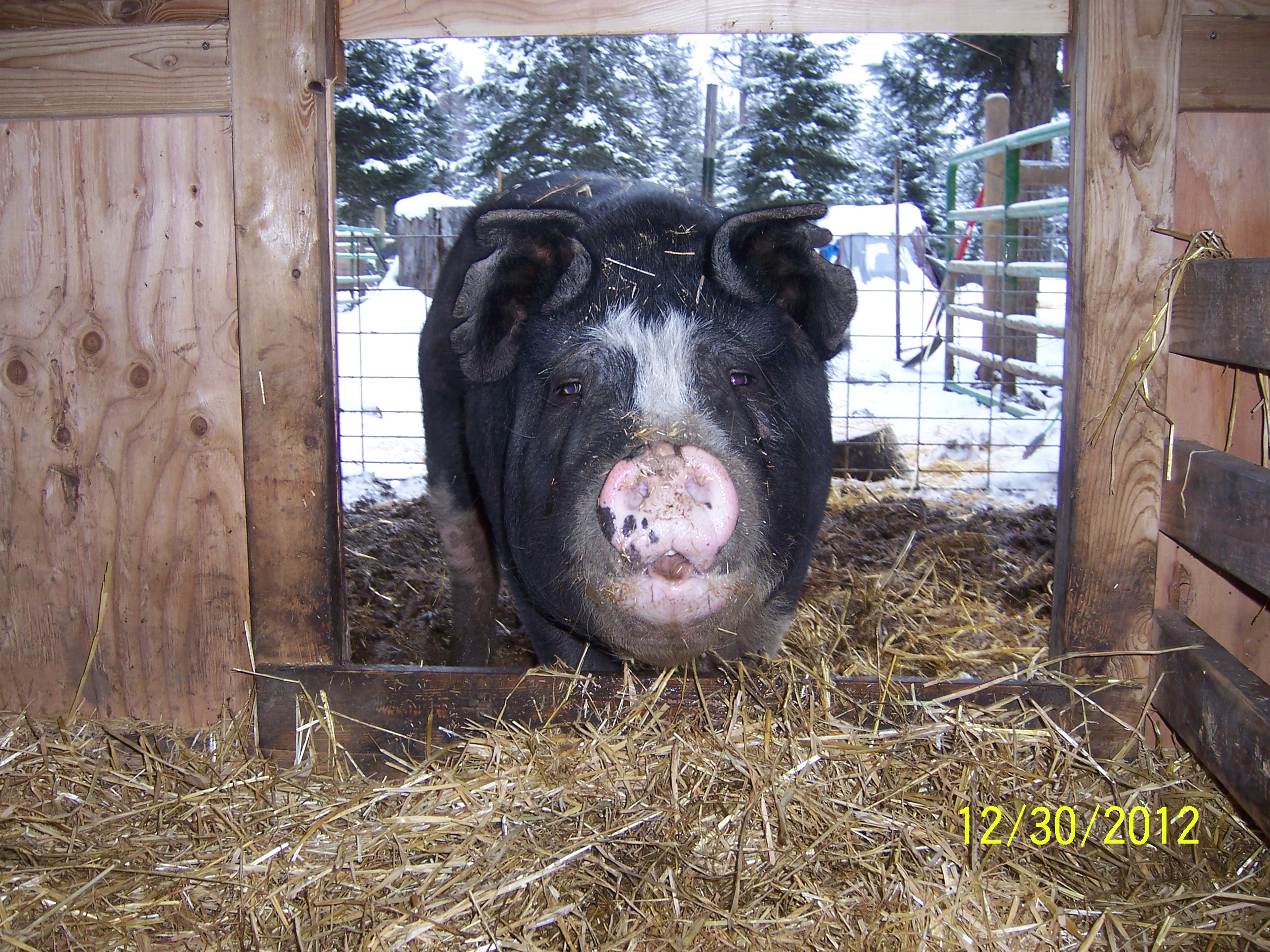 We get a lot of snow here. What a perfect place to raise hogs! If we stay here long enough maybe our Berkshires will evolve … develop snowshoeʼs like a hare or webbed feet like a goose.