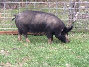 So, ‘The Destination’ here at our little Enumclaw Heritage Hog Farm is to raise healthy, happy heritage Berkshire hogs entirely outside, on pasture and in the woods, to provide quality meat products and breeding stock for folks in the Great Pacific Northwest. We want to, as much as possible, integrate this operation with landscape values/wildlife habitats here on our little hog farm, and perform all facets of this business as environmentally sustainable as we can.